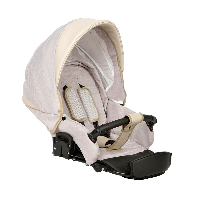 В прогулочном блоке спинку можно откинуть и организовать удобное спальное место на улице. Для этого необходимо также поднять подножку, чтобы ребенок мог удобно положить ножки. Блок устанавливается в любом из двух направлений по усмотрению родителей. Чехлы и капюшон прикрепляются к спинке с помощью молнии. На накидке имеется ветрозащитный отворот. По традиции для «прогулок» в составе модульных колясок есть надежные 5-точечные ремни безопасности и защитный бампер.